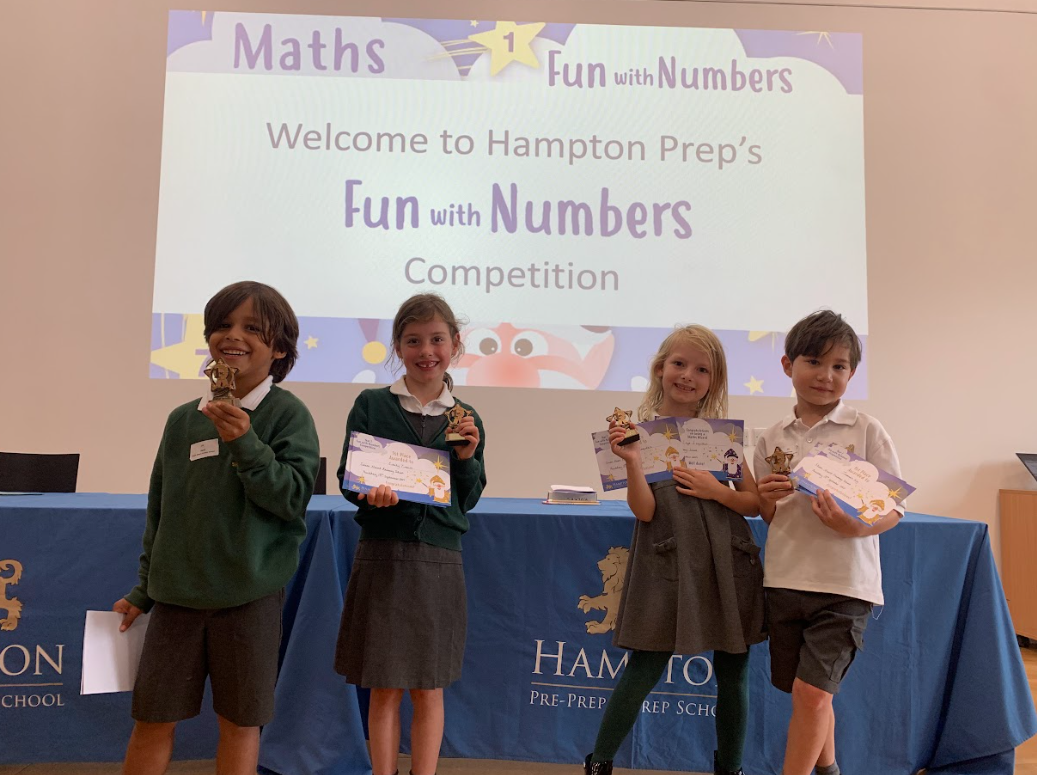 Last week a team of children attended a Year 2 'Fun with Numbers' Mathematics Competition at Hampton Prep School. They completed four rounds including missing box calculations, guess my number and problem-solving involving monkeys and building towers. They competed against nine other schools in the area. This is the first time we have attended this event and are very proud to announce that our team came 1st and were awarded certificates and trophies. I was very impressed with how well they collaborated and cooperated with each other, as well as their resilience when faced with some tricky maths problems.